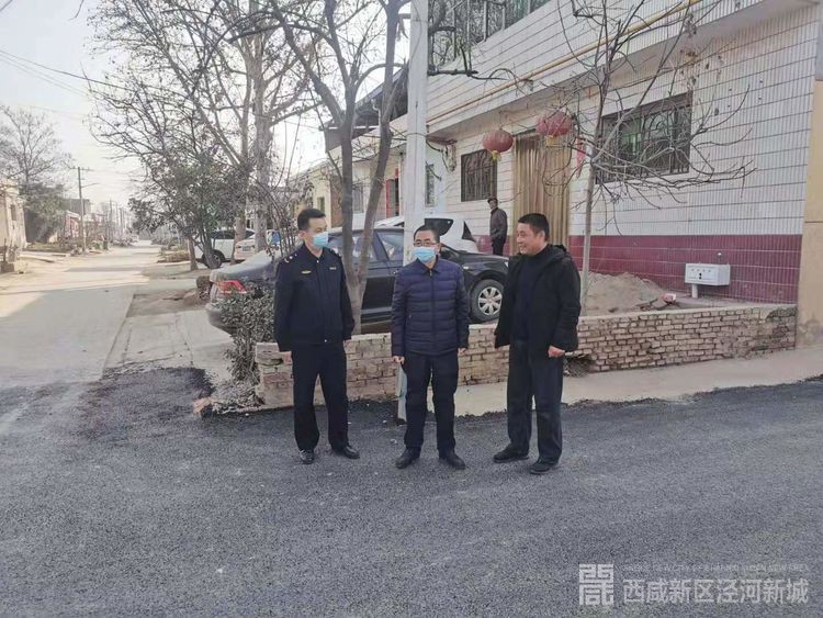 泾河新城城管交通局分管副局长尚北平带领交通运输科、泾河城服公司对看守所门前道路、大庄村路面施工完成情况进行检查。