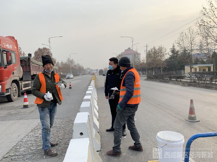 交通运输科对原点大道水泥隔离墩施工情况进行现场检查,并要求注意施工安全,严格按照规范施工。