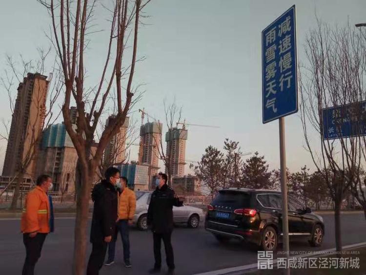 交通运输科与泾河城服公司对辖区桥梁雨雪雾天警示标志标牌安装位置进行现场勘查确定。