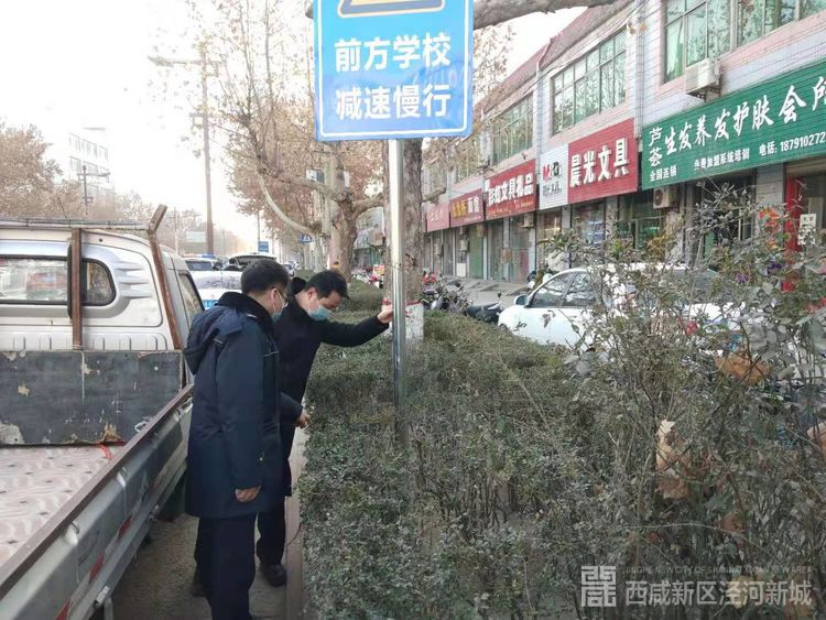 交通运输科对泾干中学、泾干镇中学门前交通安全设施设置情况进行现场检查,并对泾干大街沿线移位隔离护栏进行恢复。