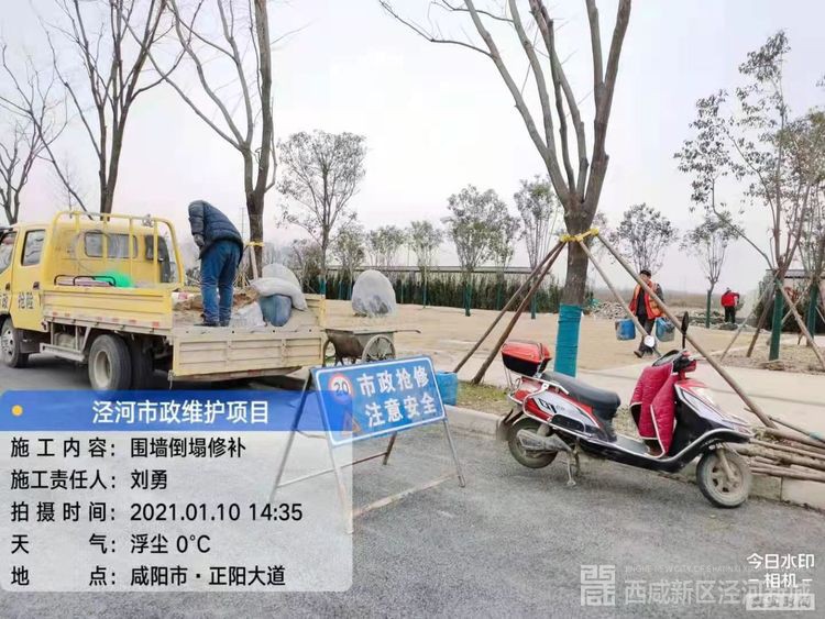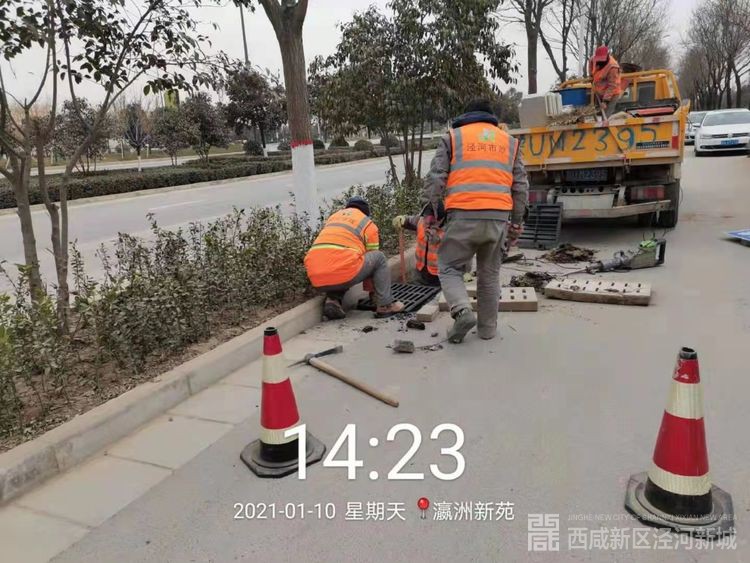 维护辖区市政设施,今日对泾河湾路南侧路东拆除并安装道牙石6米、拆除及铺设人行道砖6.7平方米;破除人行道砖45余平方米,铺设10余平方米;永乐工业园南北路维修更换井框井篦子15套。