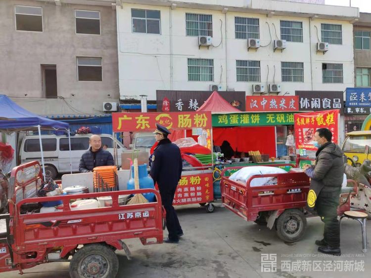 今日引导先锋大街、吉元大街、中心街7家占道经营流动摊贩进入摊群点规范经营。整治华尔街南口、运政路北口、聂冯市场5起超范围经营和超时限经营的食品摊贩,整治泾干大街2家商户出店占道经营。