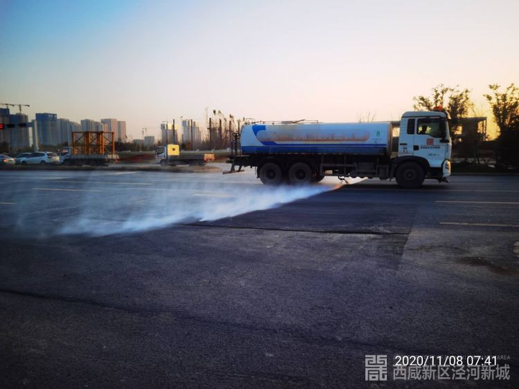 今日安排16辆洒水车、4辆小冲洗车,配合人工保洁冲洗正阳大道、茶马大桥、管委会周边、沣泾大道、泾河大道、泾永路、泾干大街、中心街、金柳大街、北极宫大街的人行道、道路隔离栏、道沿根部泥土共计24970余米。