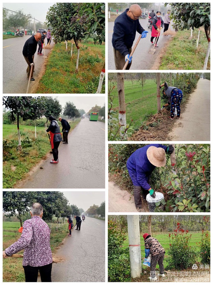 继续组织 保洁员对各村公共区域、公共设施进行大清扫、大擦洗工作,共组织保洁员人员 100 余人,清理乱挂、乱贴 40 处,树叶 20 桶。有力的提高我镇环境卫生面貌。高庄村现场查看雨污 分流管道施工进度情况。