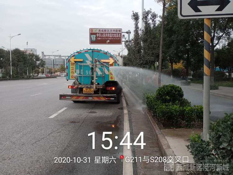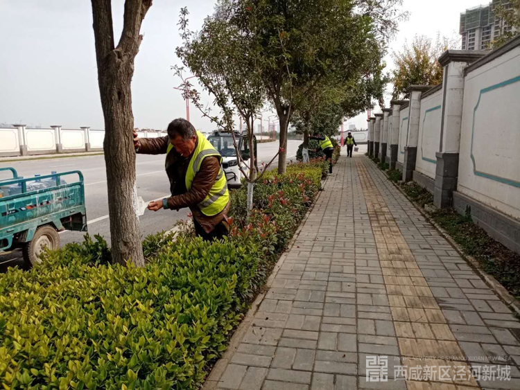 (七)对区域主干道侧分带绿化植被进行冲洗,开展绣花作业擦干,确保绿化苗木干燥不沾尘。高泾大道、泾晨路、泾干一街、茶马大道、 沣泾大道、正阳大道等道路修剪绿篱灌木 31000 平方米,打草除草 28000 平方米,修剪绿篱球 280 棵,修剪侧分带乔木360 株。乔木涂白 1000 棵,秋季施肥 300 公斤,绿化浇水 78 车次,共计 936 吨。