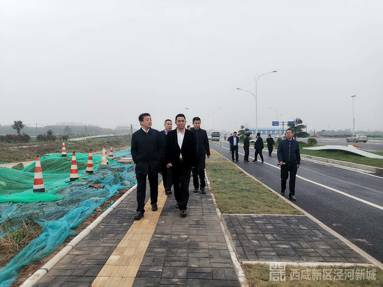 在泾河新城,陈默听取了泾河新城城市管理与交通运输局副局长房根平关于泾河一中门前景观提升工作开展情况的汇报。随后,实地查看了泾河一中门前景观提升及周边基础设施完成情况。