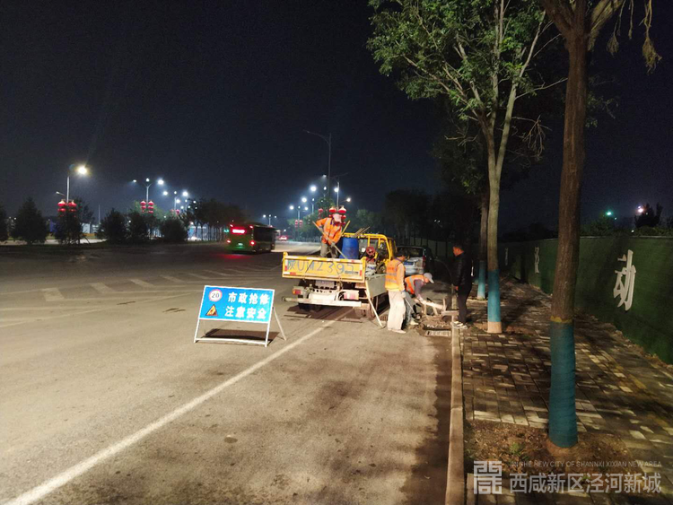 连夜处理正阳大道破损收水井及修复道沿石,改善新城人居环境。