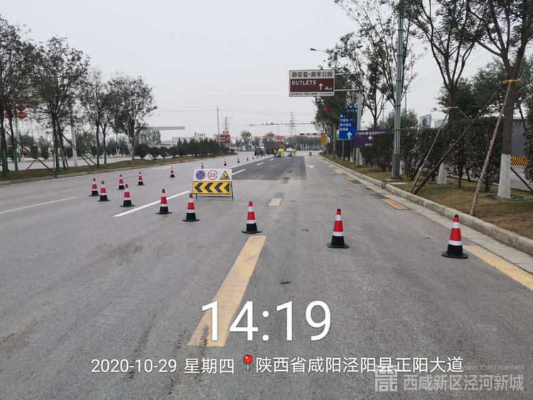 在辖区正阳大道、泾河弯路施划市政道路标线,切实提升交通安全指数。