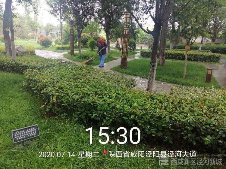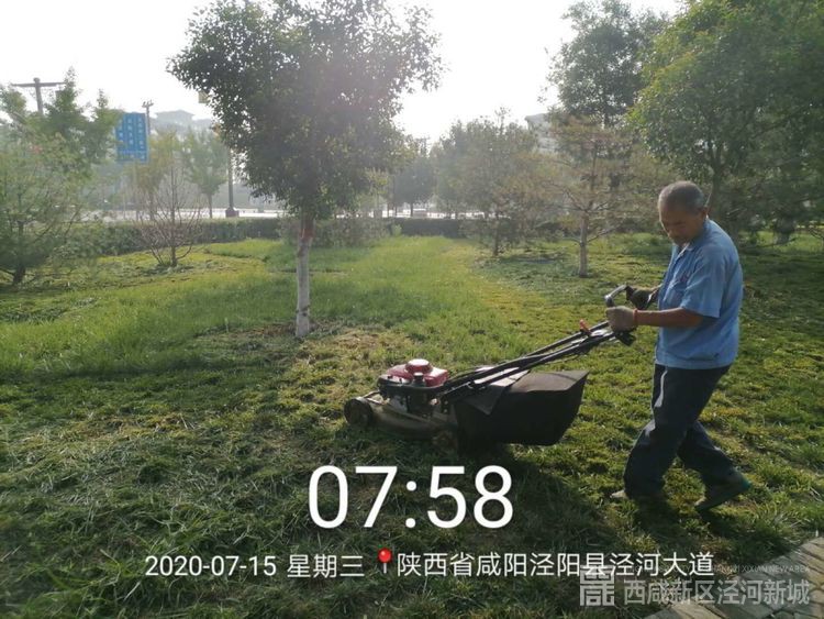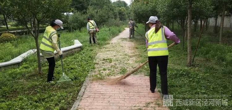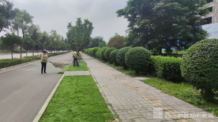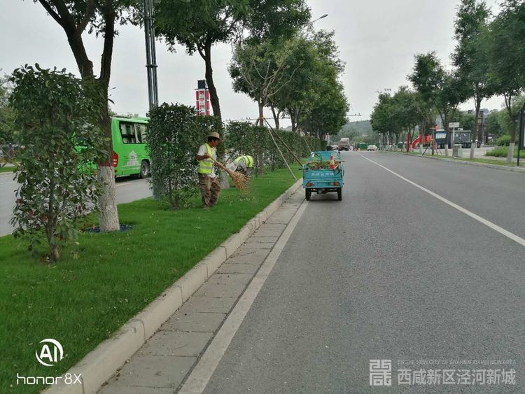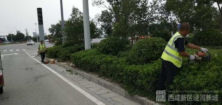 沣泾大道修剪草坪并清理垃圾