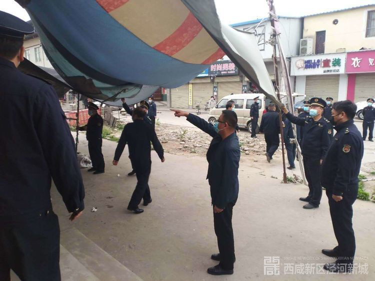 为贯彻落实泾河新城城乡环境集中整治行动实施方案,全面提升城市精细化管理水平。4月10日上午,城管交通局、永乐镇政府、原点东路派出所、环卫站、电管站组成联合执法组,协调机械设备,以永乐辖区老市场及背街小巷周边区域为治理重点,开展乱拴乱挂、乱堆乱放、乱贴乱画、乱搭乱建等整治拆除行动。