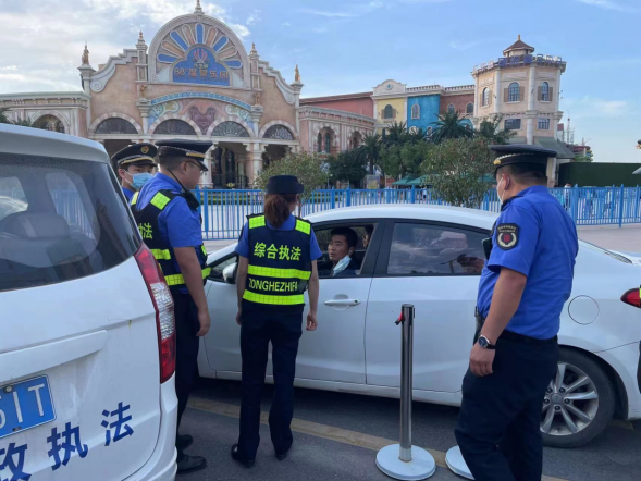 针对乐华城景区的开发,前来旅游的市民群众及私家车数量急剧增加,其中存在不少黑出租、网约车等非法营运车辆,给景区和旅游安全带来了很多安全隐患,直属一大队加大执法力量投入,开展集中整治行动,坚决查处“黑车”拉客、宰客等违法违规行为,发现一起打击处理一起。同时,执法人员还向游客讲解了有关乘坐“黑车”的危害和安全乘坐车辆出行常识,提醒广大群众要乘坐有正规营运手续车辆,自觉抵制“黑车”。