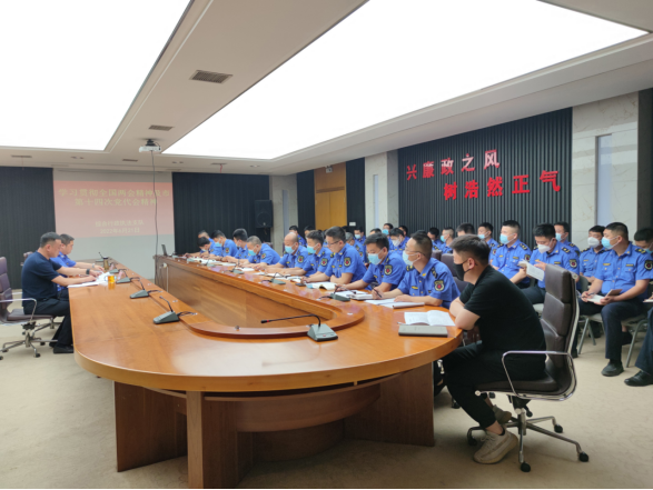 6月21日上午,综合行政执法支队召开学习全国两会精神及市第十四次党代会精神会议,认真学习习近平总书记在全国两会上的重要讲话精神,传达全国两会精神和市第十四次党代会精神,并安排部署贯彻落实工作。综合行政执法支队支队长杨光悦、副支队长安甄迪及中队长以上人员参加会议,会议由支队副支队长安甄迪主持。