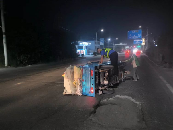 救援结束后,执法人员对老人夫妇身体状况进行简单询问,老人表示并无大碍,随即执法人员帮助老人将三轮车抬回路面,确认车辆受损情况轻微不影响使用后,执法人员叮嘱老人要小心驾驶,并目送老人驾车离开。