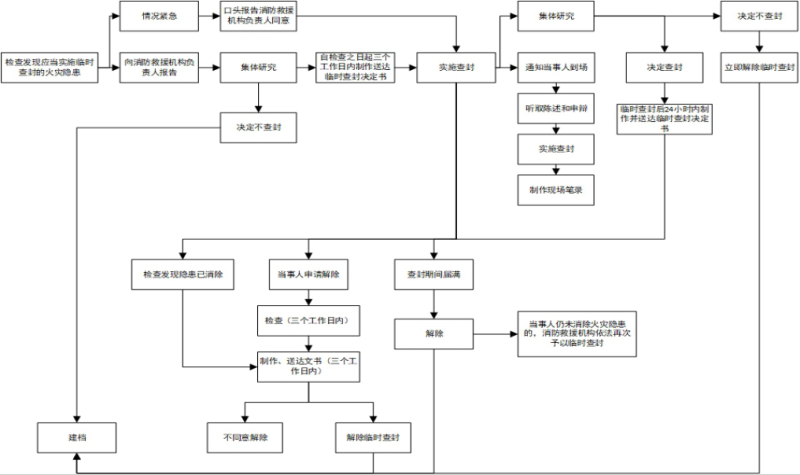 6.对检查发现的火灾隐患,依法督促整改、实施处罚,不及时消除隐患可能严重威胁公共安全的。依法依规对危险部位或场所采取临时查封措施。