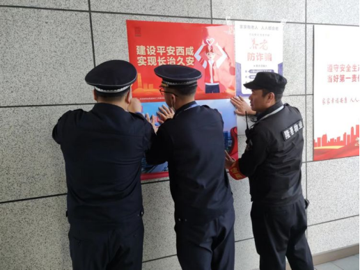一是当好平安建设“宣传员”。社会的安定有序离不开群众的共同参与。泾河新城综合行政执法支队通过网格化管理,走进企业、走进社区,深入开展“平安西咸”宣传活动,执法队员采取张贴标语,提升群众法治意识,引导群众共同参与社会治理,营造共建共治共享的良好氛围。截至目前,累计张贴“平安西咸”宣传海报270余张。
