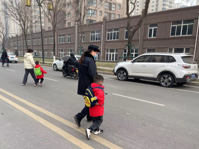 2月6日,泾河新城全区中小学、幼儿园迎来了新学期开学第一天,泾河新城综合行政执法支队“护学岗”的执法人员也按时来到学校“报到”,守护学子们的平安出行。