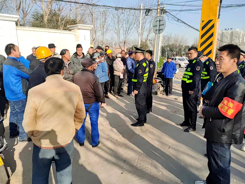 执法人员现场宣传引导务工人员前往三河路开阔区域