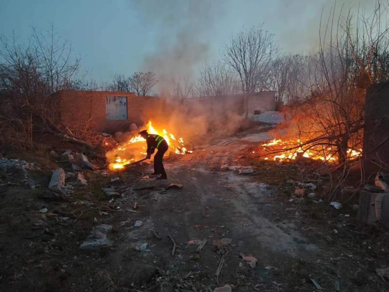 3月14日晚间,泾河新城综合行政执法支队执法队员在夜晚值班巡查过程中,发现并立刻联系消防人员及时扑灭了两处火情,保护了群众的生命财产安全。