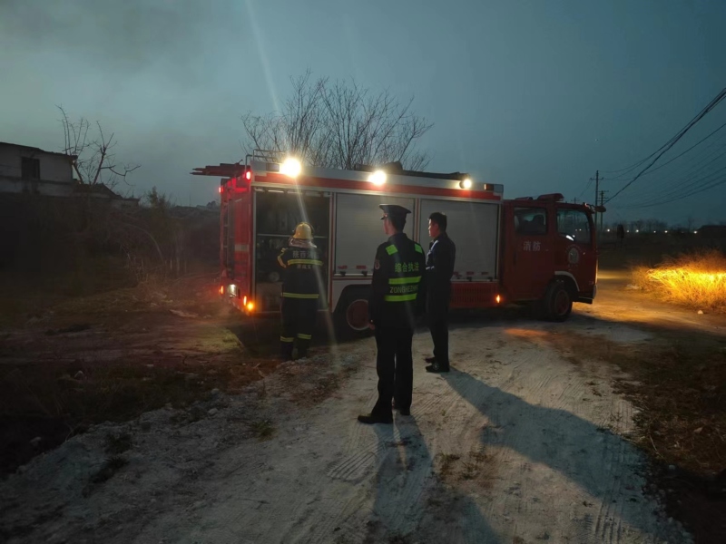 当晚21时左右,永乐大队执法队员在巡查至秦龙大道北段时发现明火,立即拨打火警电话,协助消防人员扑灭火情。