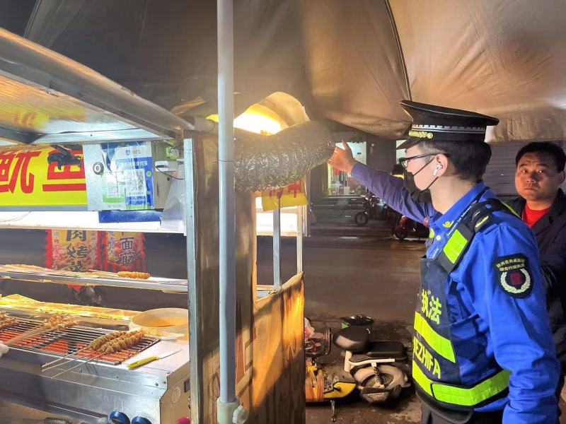 随着天气逐渐转暖,夜市烧烤渐渐火了起来,为有效治理餐饮企业、夜市烧烤带来的油烟扰民、污染路面、噪音污染等问题,泾河新城综合行政执法支队常态化开展餐饮油烟及露天烧烤专项整治行动,对辖区内重点路段进行巡查。