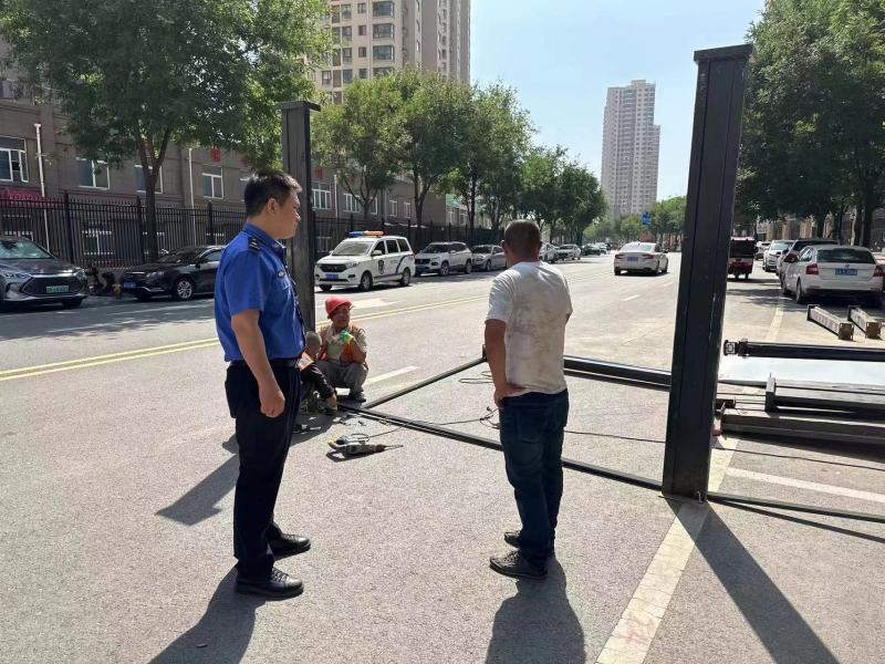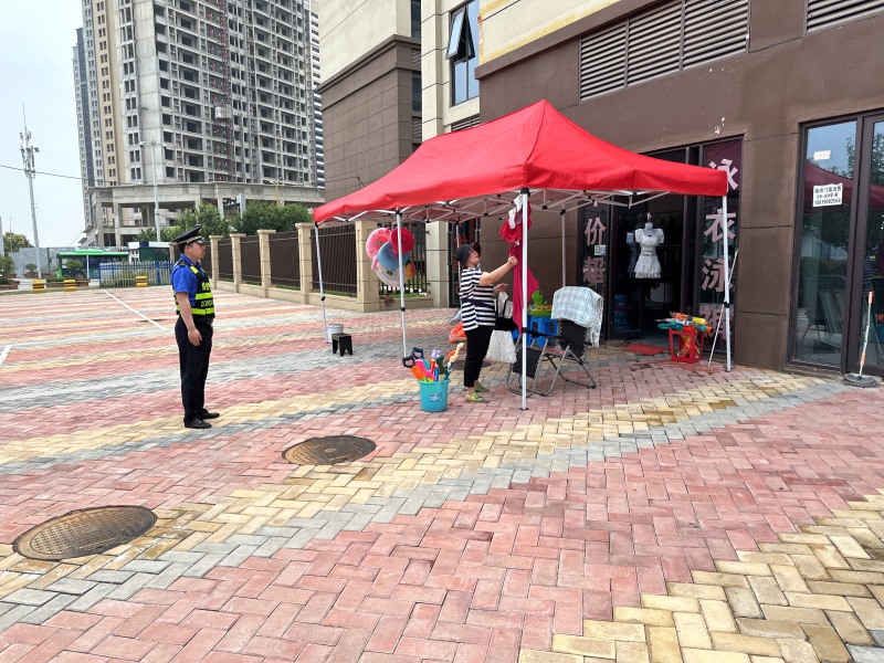开展市容环境整治。流动摊贩、出店经营等行为易引发人流、车流聚集,影响道路交通安全。执法队员按照“定人、定岗、定责”的原则,加大对新城主次干道、十字路口的治理,采取“一规劝、二教育、三执法”的方式,对违规占道的流动摊贩进行劝离,并耐心向摊主宣传法律法规,确保市容环境秩序整洁、有序、安全。