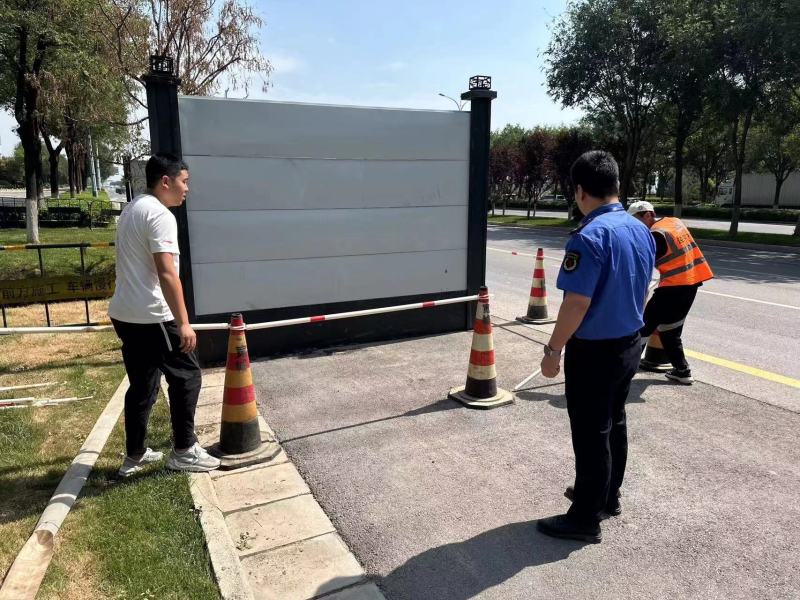 开展围挡整治专项检查。本次施工围挡设置和管理专项整治,主要是针对未审批、围而不建、围而慢建、围大建小以及存在安全隐患、影响通行、无标识、破损以及围挡内物料乱堆放、垃圾清理不及时的围挡进行拆除和整改。要求各施工单位严格按照《泾河新城围挡(墙)登记备案、管理实施细则》相关规定设置围挡并做好安全警示措施,对破损、倾斜围挡(墙)进行更换、维修、加固,维护周边日常环境,加快施工进度,杜绝安全事故的发生。