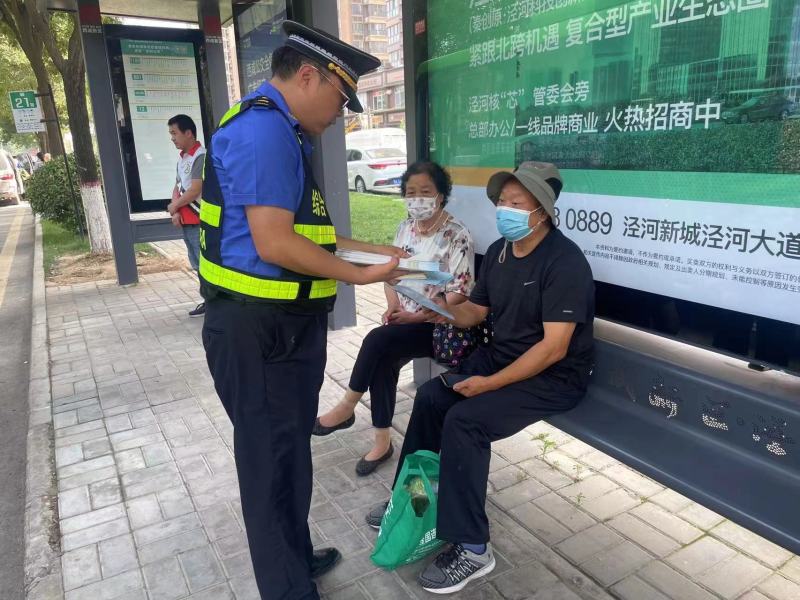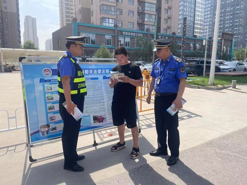 开展交通安全宣传。执法人员通过向群众发放文明交通宣传彩页、普及交通安全知识、讲解交通法规等形式,呼吁群众遵守公路交通法律法规,合法装载运输,自觉抵制不文明交通行为。告知群众“法治交通,普法先行”,倡导文明交通新风,摒弃交通陋习,切实增强群众文明交通意识,打造安全、和谐的出行环境。