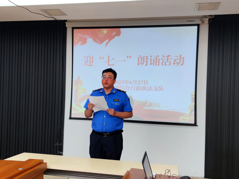 活动现场,执法队员以生动的语言、真挚的感情,紧紧围绕“党建领航新征程 凝心聚力促发展”主题,结合自身工作实际和成长经历,为大家带来了《青春逢盛世 青年当有为》、《党旗红·执法蓝》、《可爱的中国》等精彩的朗诵作品。