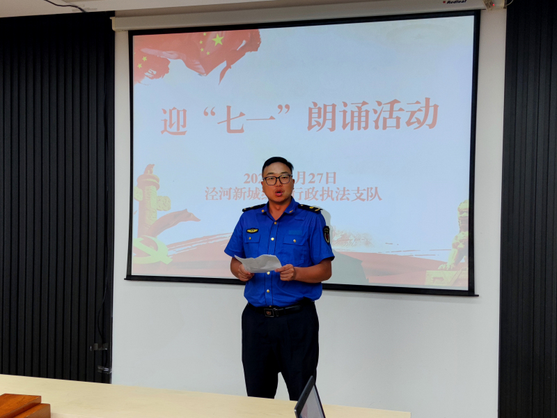 为学习贯彻习近平新时代中国特色社会主义思想主题教育营造良好氛围,推进青年理论学习走深走实,6月27日上午,泾河新城综合行政执法支队举行“党建领航新征程 凝心聚力促发展”主题朗诵活动。