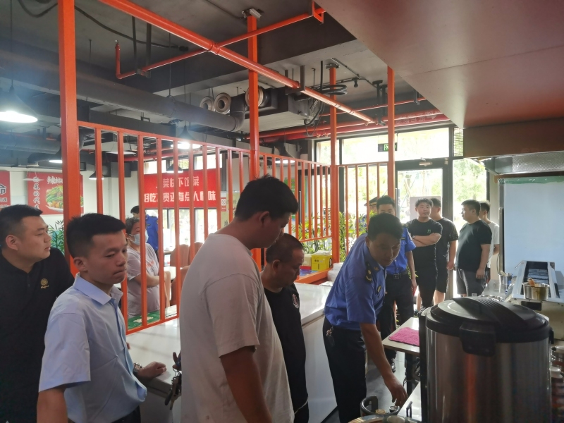 近日,综合行政执法支队联合招商中心开展崇文环路“绿色餐饮油烟示范街”现场观摩推进会。观摩组邀请崇文永乐汇——川府地摊鱼、黄子鸣烤肉、弘历虾尾等13家餐饮商户负责人进入崇文环路重点餐饮单位进行观摩。观摩期间,大家不断就餐饮油烟治理进行交流,向执法人员提问咨询,认真听取油烟治理工作好的做法,有的商家直接动手触摸集烟罩,每一个细节都不放过。通过观摩,比出了差距,找到了标准和参照,为精准对标整改提供了思路。