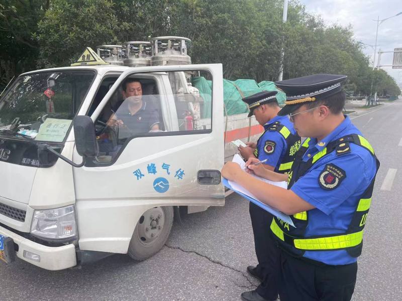 执法人员结合辖区道路交通特点和危险货物运输车辆出行特点,以辖区城际道路、餐饮聚集区等为重点路段,通过采取定点检查和流动巡查相结合的方式,对过往危险货物运输车辆进行安全检查,重点查处没有取得危险货物运输资质、运输存储液化气钢瓶等易燃易爆危险物品等违法行为。截至目前,检查危险货物运输车辆40辆次,未发现违法运输车辆。