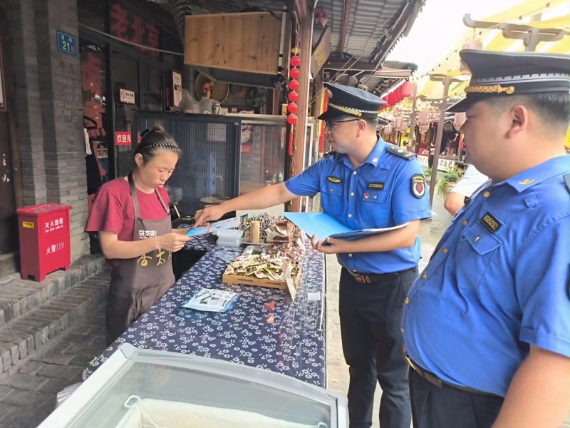 执法队员在执法检查过程中,积极主动向施工单位、餐饮企业等责任主体宣传安全生产注意事项、防暑降温常识,重点对电焊切割、燃气钢瓶使用、露天垃圾桶等隐患点位进行排查,督促各单位自查自纠,及时发现并现场消除燃气软管老化、危废处理等安全隐患,提升高温下安全防范意识和安全生产经营的应对能力。