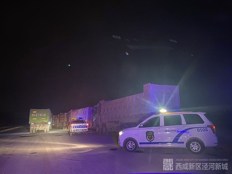 近期,违规运输渣土车已成为影响城市道路交通安全和大气治理的重大安全隐患,扰乱了渣土运输秩序。为营造优良人居环境,提升大气环境质量,回应人民群众对平安出行、放心出行的期盼,泾河新城城市管理与交通运输局连续开展夜间专项整治执法行动。