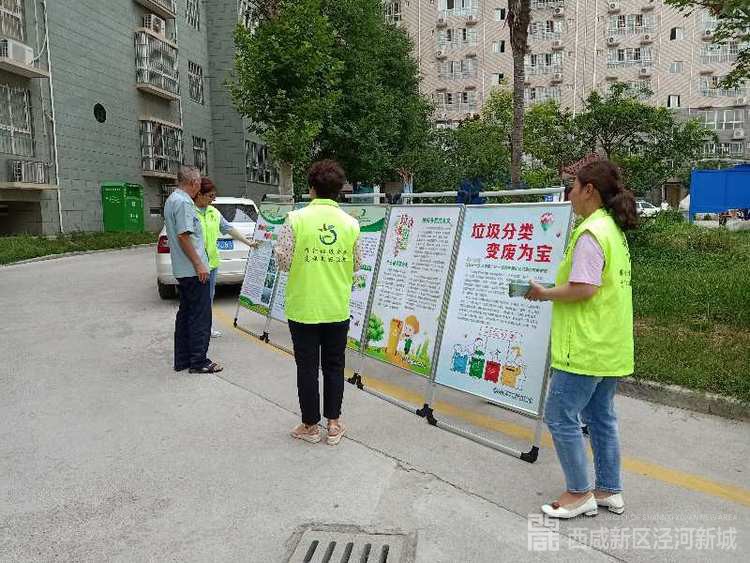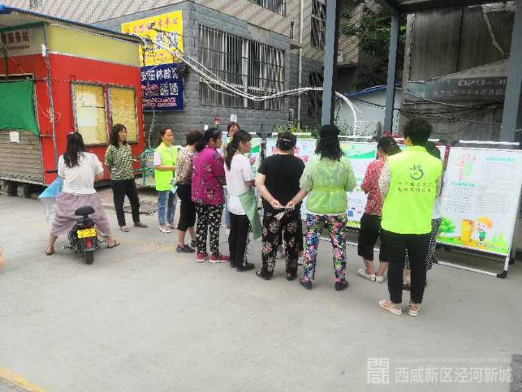生活垃圾分类工作小组在泾干街办泾润花园小区组织开展生活垃圾分类宣传活动,通过宣传展板展示向小区居民发放垃圾分类宣传手册300余份等形式向大家科普垃圾分类相关知识,利用四分类垃圾桶演示如何正确分类投放,对大家提出的相关问题逐一解答。