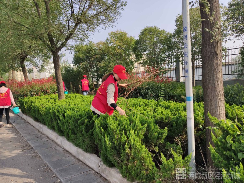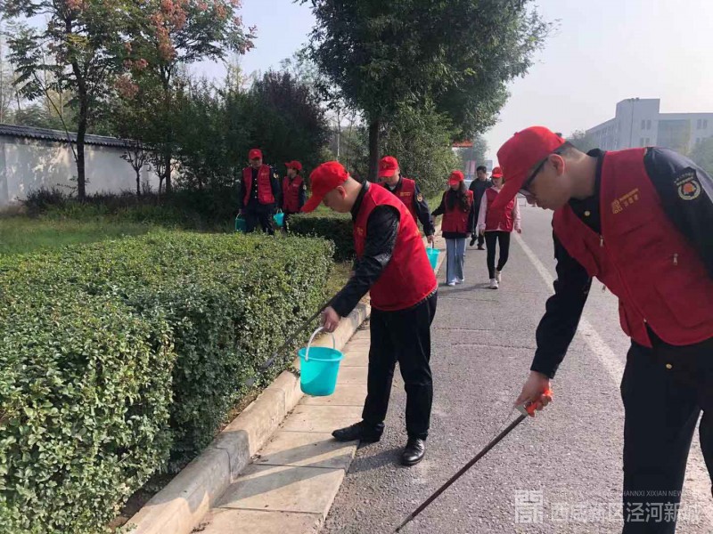 组织党员志愿者、机关干部志愿者在泾晨路、泾干四街、原点西三路,和环卫工人一起,集中开展卫生清洁、烟头捡拾行动,美化居住环境,着力改变“脏、乱、差”现象,创建干净整洁、宜居优美的生活环境。