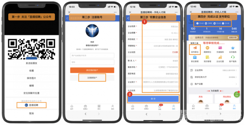 电脑端:粘贴网址https://www.xbjob.com至浏览器地址栏打开显摆网→【注册】→完成账号注册→选择【我是招聘者】→完善企业信息→认证手机、微信、邮箱、营业执照→等待审核→发布职位。