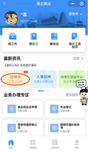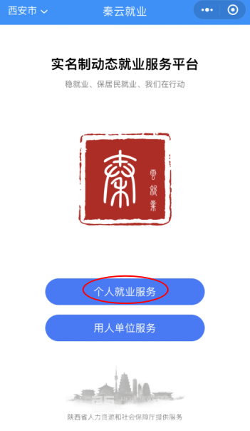 1.微信搜索“秦云就业”小程序,或识别小程序码,点击“个人就业服务”,注册个人信息。