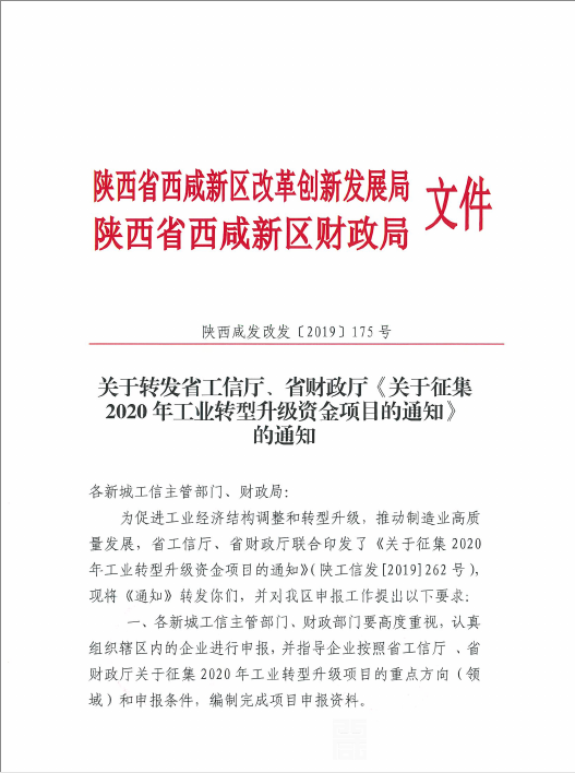 关于征集2020年工业转型升级资金项目申报指南的通知
