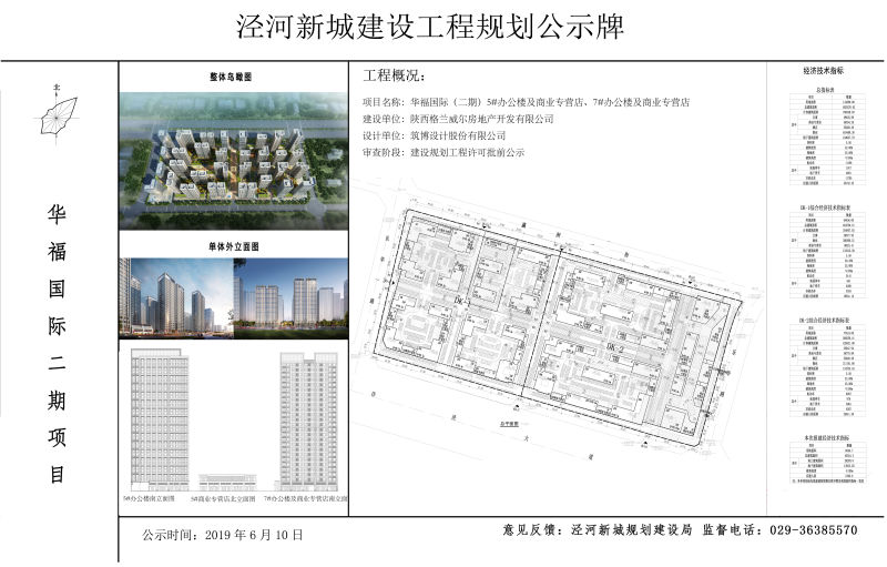华福国际二期5#办公楼及商业专营店、7#办公楼及专营店项目已通过建筑设计方案审查,现进行建设工程规划许可批前公示,公示期2019年6月10日至2019年6月16日。如有异议,请于7日内向规划建设局反馈。