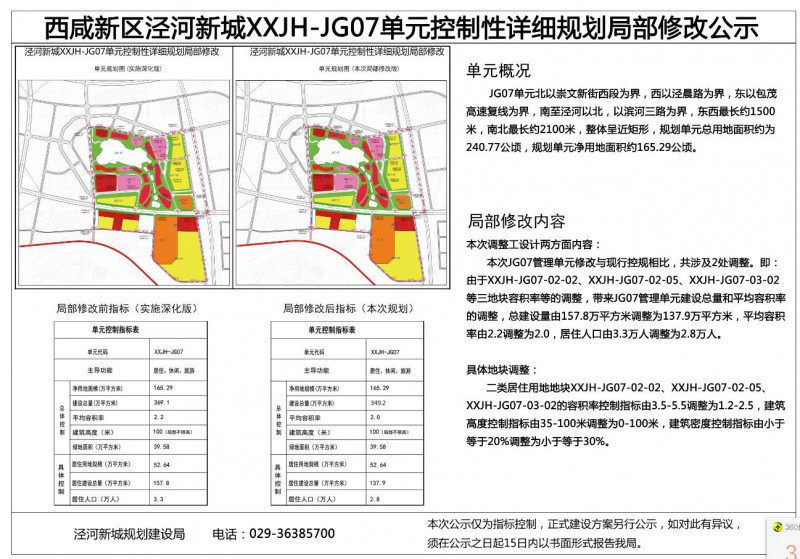 西咸新区泾河新城XXJH-JG07单元控制性详细规划局部修改公示