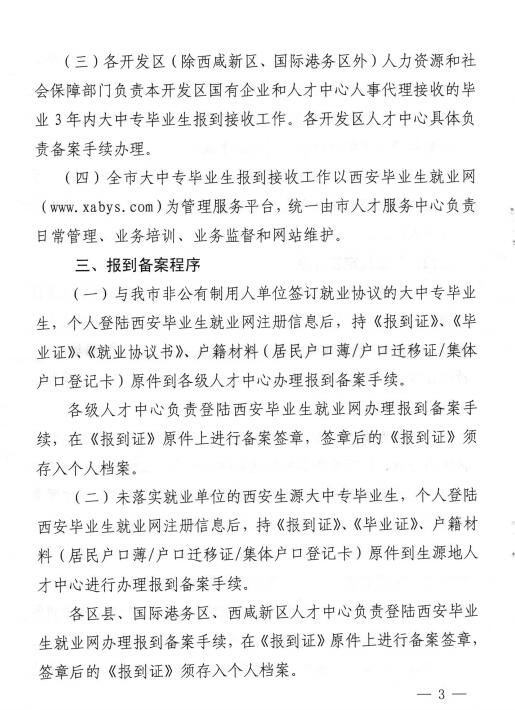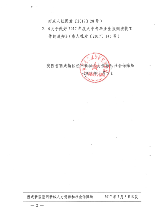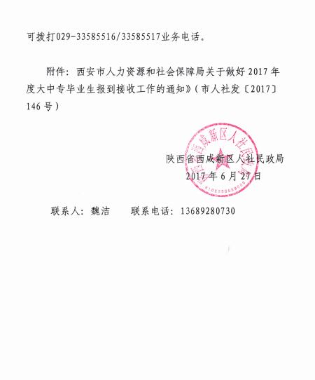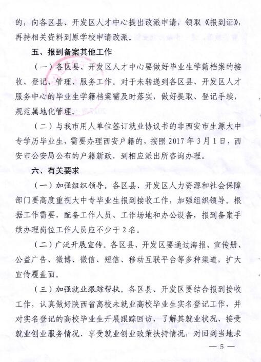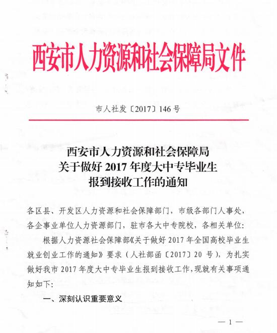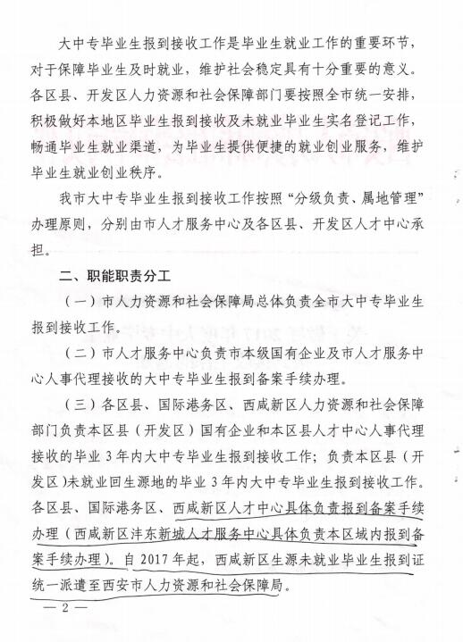 附件二:西安市人社局《关于做好2017年度大中专毕业生报到接收工作的通知》
