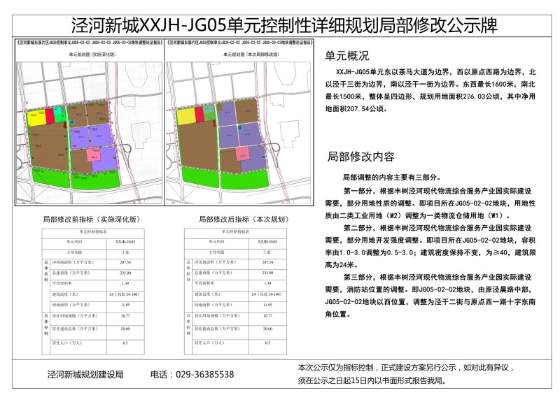 泾河新城XXJH-JG05单元控制性详细规划局部修改公示牌