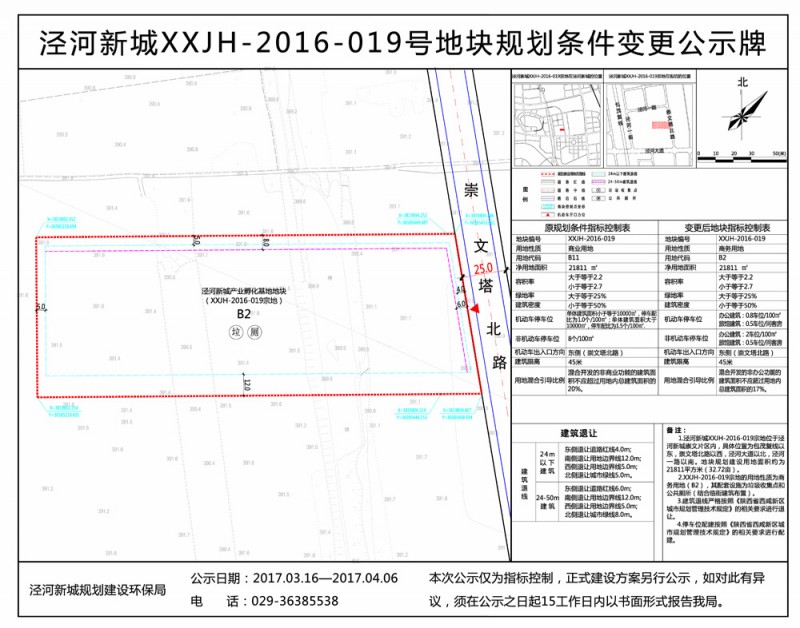 泾河新城XXJH-2016-019号地块规划条件变更公示