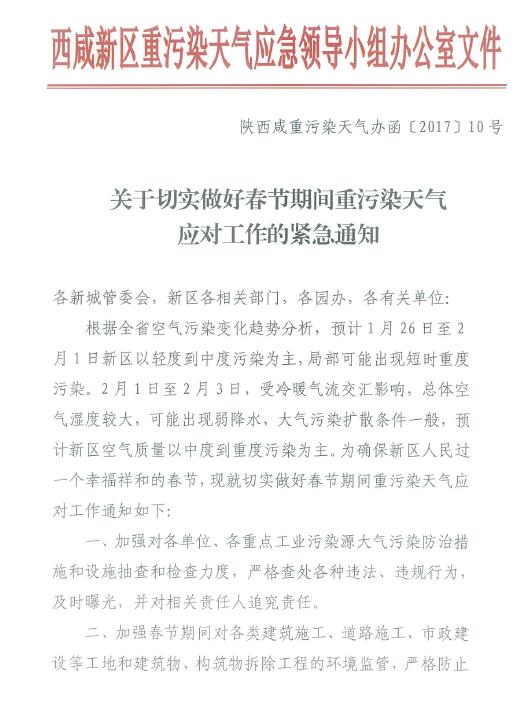 关于切实做好春节期间重污染天气应对工作的紧急通知