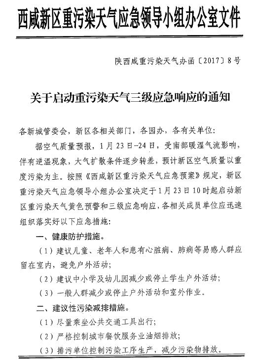 关于启动重污染天气三级应急响应的通知