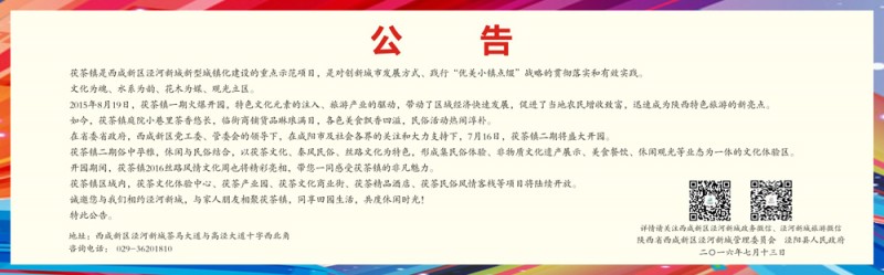 在省委省政府,西咸新区党工委、管委会的领导下,在咸阳市及社会各界的关注和大力支持下,7月16日,茯茶镇二期将盛大开园。