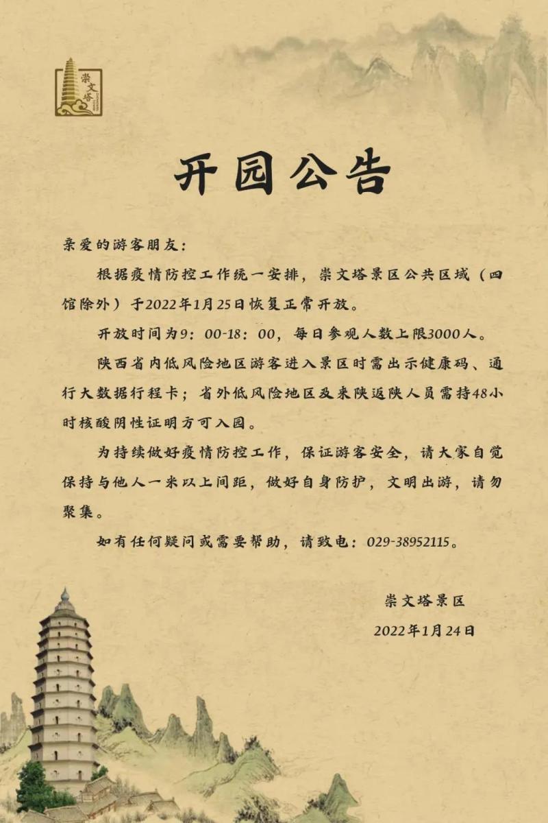 崇文塔景区开园公告