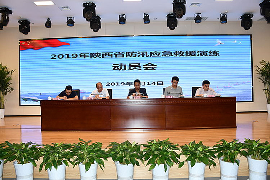 2019年8月14日下午,由陕西省应急管理厅主办、西咸新区管委会和西安市应急管理局承办、新区能源金贸园办协办的2019年陕西省防汛应急救援演练动员会在西咸大厦四楼报告厅举行。陕西省应急管理厅副巡视员贾书贵,西咸新区党工委委员、管委会副主任赵孝等领导同志出席会议并讲话,会议由西咸新区应急管理局主要负责人主持。