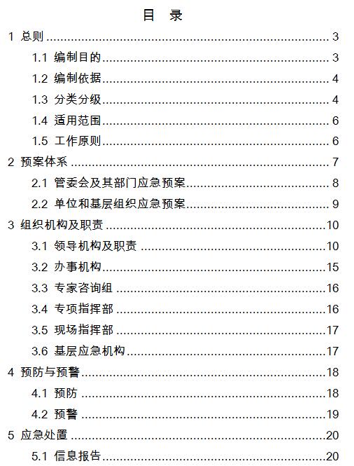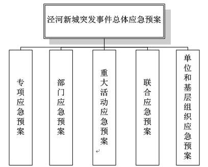 (1)总体应急预案。总体应急预案是组织指挥防范和应对泾河新城突发事件的计划安排、程序规范和行动指南,是对相关部门、单位及各街镇、各管理办编制应急预案的指导性文件。