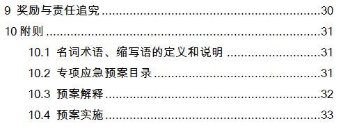 10.2 专项应急预案目录